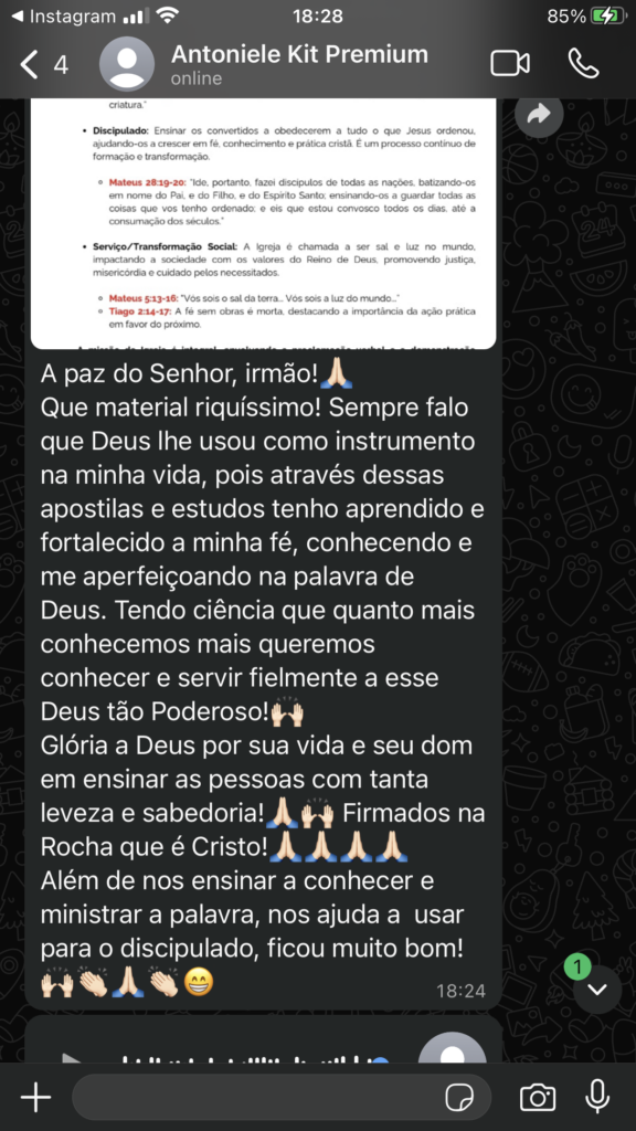 VOCÊ TERÁ ACESSO A TODOS OS TÓPICOS DE PREGAÇÃO QUE ESTÃO DISPONÍVEIS NO INSTAGRAM.
